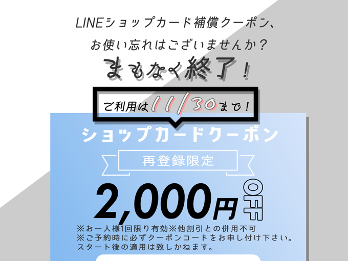 誠に勝手ながら、11/6(木)のお電話・LINE受付は16:30~とさせていただきます。