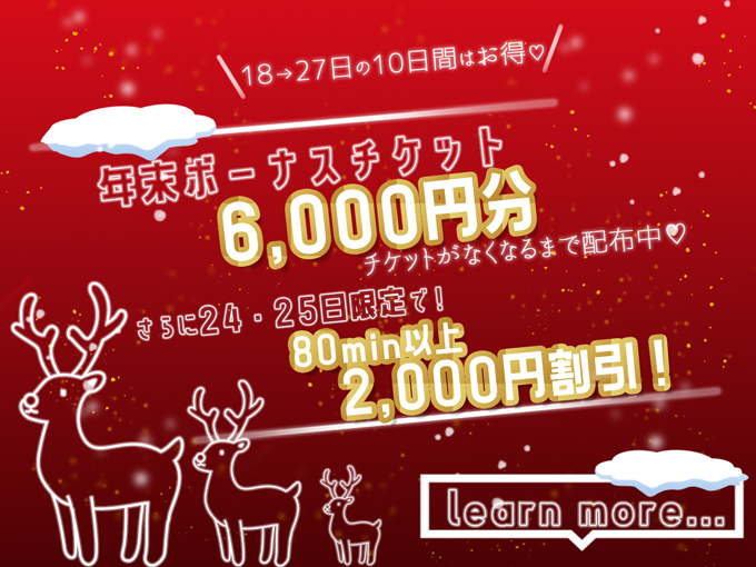 女の子プロフィールページに【新人】マークがついている新人さん限定で、80分以上のコースを3,000円OFFにてご案内しております。